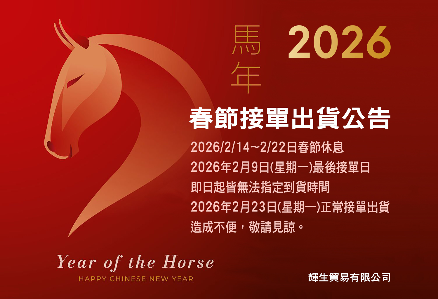 春節2/14~2/22休息、2/9(星期一)為最後接單日,2/23(星期一)正常接單,造成不便敬請見諒。